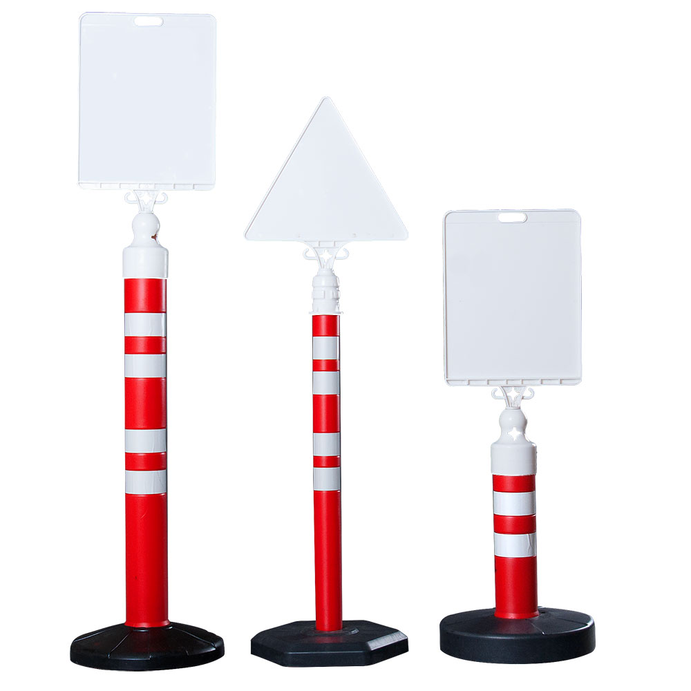 Unser neuestes Produkt sind unsere Absperrpfosten mit Schilderaufsätzen. Dadurch können Bereiche sicher abgesperrt werden, zusätzlich dazu Warnungen und Informationen übermittelt werden. Wir bieten diese mit dreieckigen, viereckigen oder runden Schilderaufsätzen an, in den Größen 650 und 1200 mm, mit einem Durchmesser von 60 und 110 mm, sowie einem Gewicht von 4,5 und 12 kg. Für unsere Kettenpfosten sind verschiedene Standsockel verfügbar, je nach Anwendung und Bedarf.